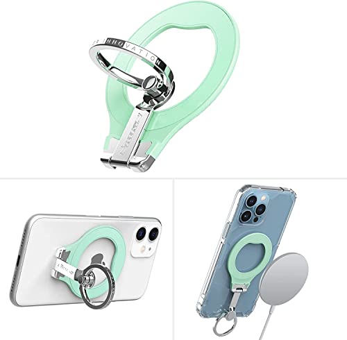 [3-in-1] Cell Phone Ring Holder Stand, 360 Degree Rotation Finger Ring Kickstand with [2X Nylon Phone Lanyard],Compatible with iPhone 13 12 11, Galaxy, Google Pixel and Other Android Phone, Green