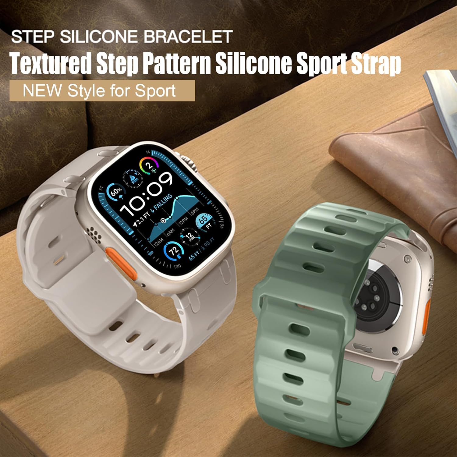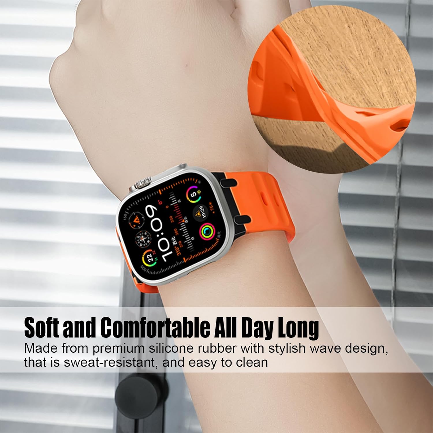 Premium Material: Made from premium silicone rubber with stylish wave design, that is waterproof, sweat-resistant, and easy to clean, this ultra 49mm strap offers a soft, smooth feel,ensuring a comfortable wearing experience all day long