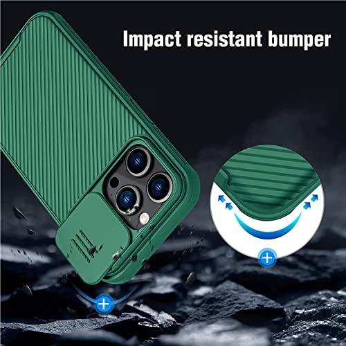 Compatible with iPhone 14 Pro Case 6.1 inch with Camera Cover,Slim Fit Thin Polycarbonate Protective Shockproof Cover with Slide Camera Cover, Upgraded Case for Apple iPhone 14 Pro (Green)
