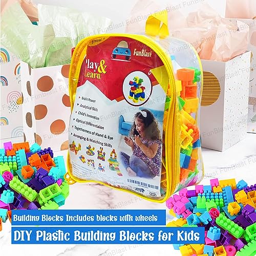 FunBlast DIY Plastic Building Blocks for Kids Building Blocks Toy for Kids Puzzle Games for Kids, Toys for Children Educational & Learning Toy for Kids, Girls & Boys – (250+ Blocks with 38 Wheels) -Made in India Kids Block Toy – In the Bag – Building Blocks Includes 250+ blocks with 38 wheels for kids. Recommended Age – 3+ Year Kids Toys Puzzles – An amazing variety of shapes, sizes and colors for easy sorting, counting, patterns, stacking and playing, creating attractive models like bus chairs, house, robot toy, car toy, aero plane, train. Kids Puzzle Blocks – This puzzle block comes in a box, which makes it very convenient to store the blocks and move them from one place to another. Great preschool toddler toy for kids to learn. Early Development Toys – Perfect for promoting children’s fine motor skills, stimulates imagination and creativity, develops hand-eye coordination and logic thinking, builds confidence. Safe & durable material – This building block set is made of high quality and durable plastic, which is safe for children.