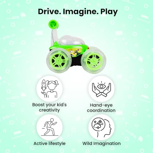 360° Rotating R/C Stunt Car: Double sides running, moving forward, backward, turning left, right, 360 degree tumbling flip for different playing experience on this electric remote control stunt car. You can control the RC cars for kids in any direction with its remote controller. This remote control car can race, and, perform double-sided driving, 360° spins and flip with its LED dazzling headlights.