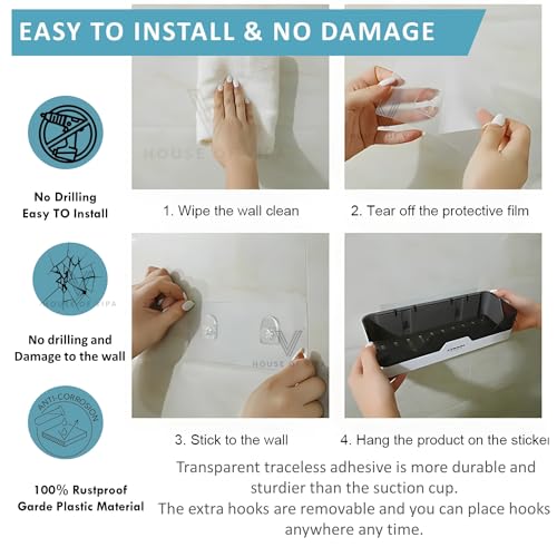 Bathroom Organizer Without Drill: The bathroom organiser is designed for easy installation. With its self-adhesive feature, you can mount it on the wall without the need for drilling.