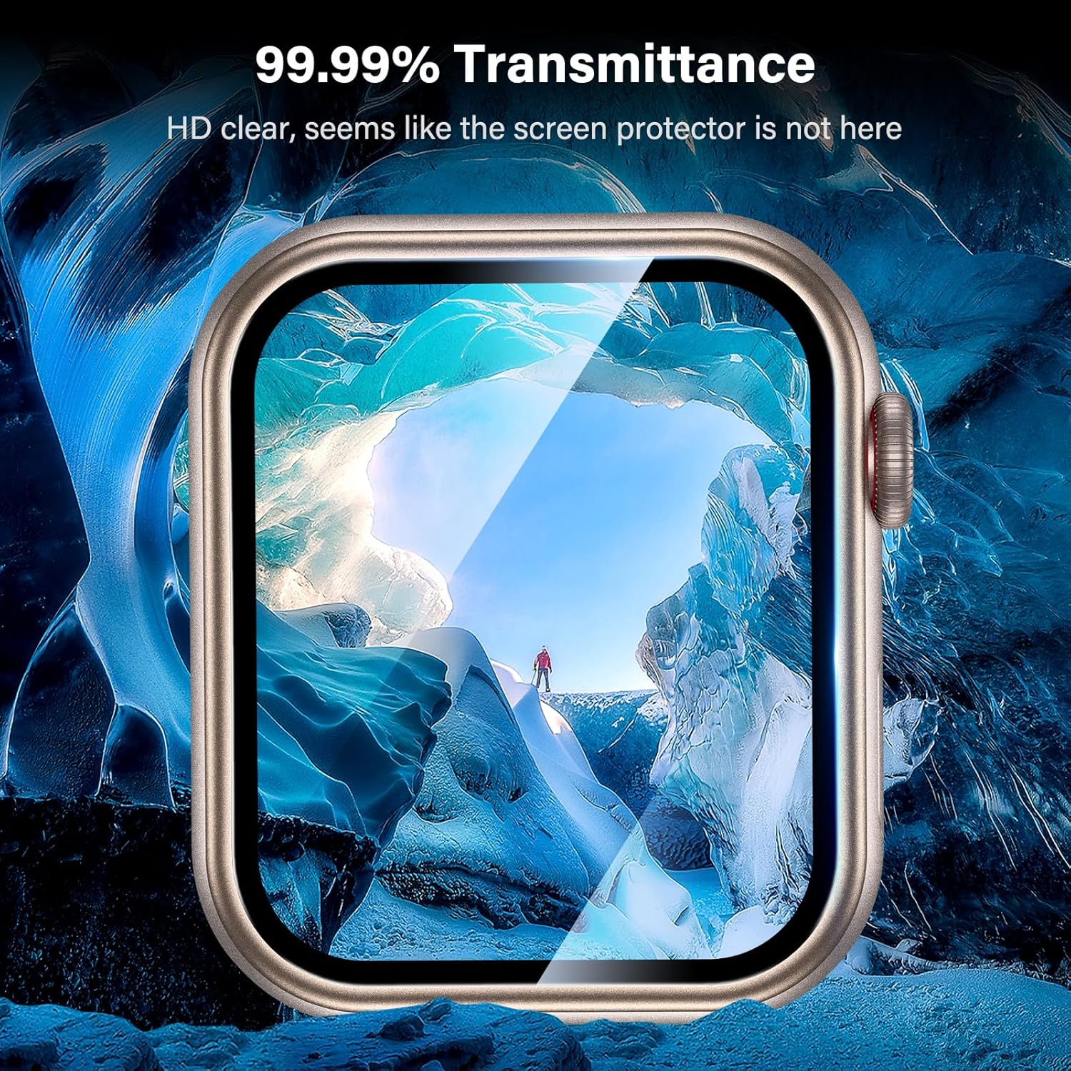 Upgrade Version: Perfect combination of Titanium Frame edges and 9H hardness tempered glass designed for Apple Watch Series 9 Series 8 Series 7 41mm screen protector. Say goodbye to the fragile TPU film and bulky case. Integrating exquisite appearance and powerful protection to protect your watch screen from damage in daily life.