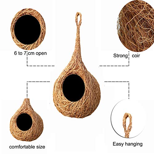 LIVEONCE Safest Round Organic Bird nest Purely Handmade Sparrow/Small Birds, Material Type -Coir,Color -Brown, Set of 2 – (Large) – H*25cm_D*15cm