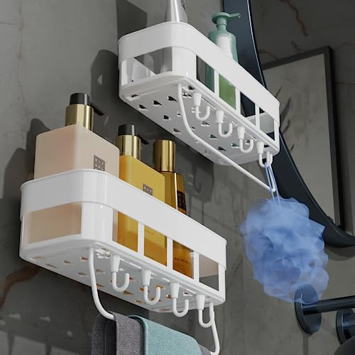 2 Bathroom Corner Shelf +8 PACK-SAVE SPACE UNIQUE DESIGN HOOKS 2 TOWEL BAR : This Wall Mounted bathroom Shelf can help you store daily products , It’s very suitable for bathroom, toilet, kitchen, powder room, etc. Make your home more tidy. The large storage capacity provides enough space to put items. And deep basket can prevent the items from crashing down