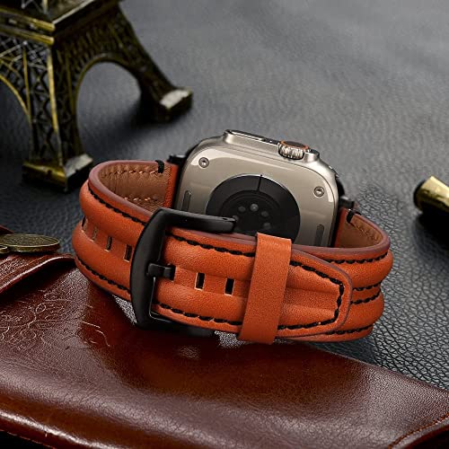 Compatible with iWatch Strap 42mm/44mm/45mm/49mm :- Handmade genuine leather replacement strap is compatible with Apple Watch Ultra 2 49mm Series 9 (2023) Ultra (2022) Series 8 (2022) Series 7 (2021) 45mm, SE (2022) Series 6 (2020) SE (2020) 44mm, Series 3 Series 2 Series 1 42mm all models.