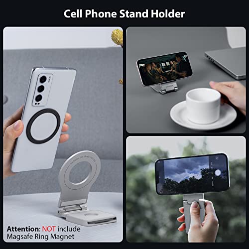 Detachable design – Press to sepreate, could use in different situation, Switch between places, Such as Car, office and Home, It is cell phone stand, and it also a Magsafe wall mount, car mount, Phone Holder for Laptop/display. Package includes two bases.