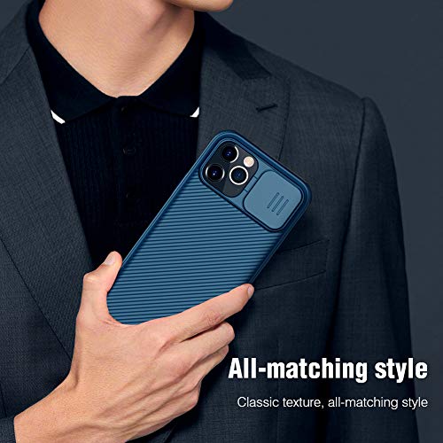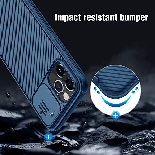 Nillkin for iPhone 12 Pro Max Case with Camera Cover, Lens Protection, CamShield Pro Shockproof Protective Bumper Hard PC Back and Soft Silicone Edge for iPhone 12 Pro Max 6.7 inch Blue