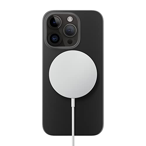 NOMAD Super Slim Case with MagSafe Compatible for iPhone 14 Pro. Our thinnest case yet, Super Slim elevates the look and feel of your iPhone while maintaining its original form factor and offering scratch protection. Premium & grippy matte finish. 360º coverage with chamfered cut-outs for buttons and ports. Raised camera bump for added protection. Wireless charging compatible. 50% post-industrial recycled materials. Available in Carbide colour.