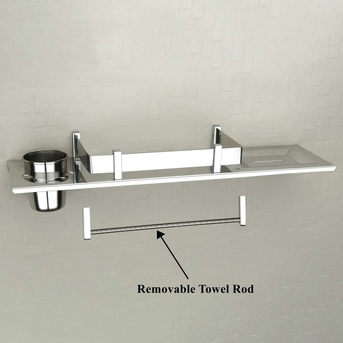 It is advised to clean the product with wet and dry clothes periodically to keep the product shiny. Please do not use acid or any other strong chemicals for cleaning product.;Packaging Contains: 1 Piece of Rack (Steel) and 1 Piece of Tumbler (Glass) as shown in image along with Fitting Materials.