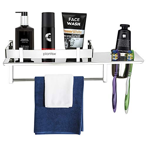 Plantex Stainless Steel Bathroom Shelf/Multipurpose Bathroom Organizer Shelf For Wall With Attached Tumbler And Napkin Holder For Wash Basin And Bathroom (15 Inches)