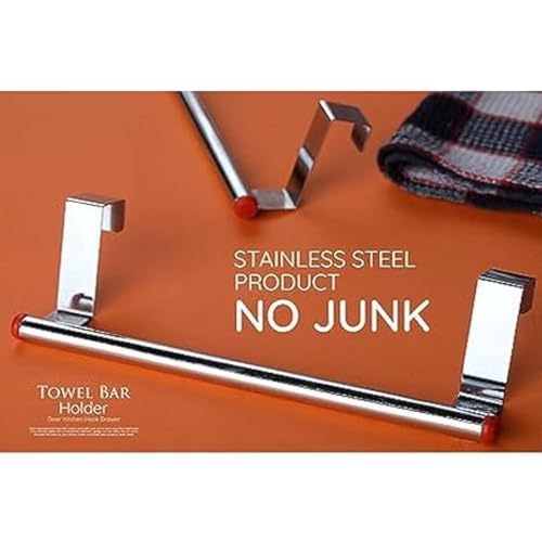 This set of 1 cabinet door towel bars easily fits over a cabinet door to create an instant towel rack in the kitchen, bathroom, office, garage, or shop. Perfect size to keep a hand towel or dish towel right where you need one. The attractive and durable brushed stainless-steel finish goes with any décor, resists smudges, and will not rust. The towel bar will not damage your cabinets! Requires no installation or hardware and can be moved or removed at any time without leaving a mark or hole.