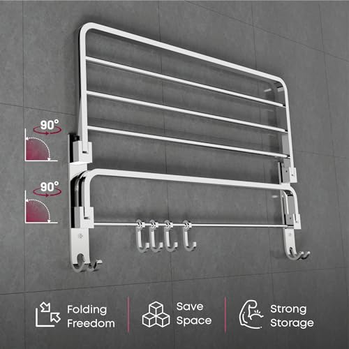 Material: High Grade 304 Stainless Steel | Finish: Nickel Chrome Mirror | Size: 24 Inches | USF Bathroom Accessories Towel Holders are manufactured high precison. The product will act as a Bathroom Organizer. Towel Rack is Foldable. The product will not only hold towels you can use the product as Towel Shelf and Shelves . The product has Towel Hooks Towel Rods Bars which will help in use the Product Multi-functinally.