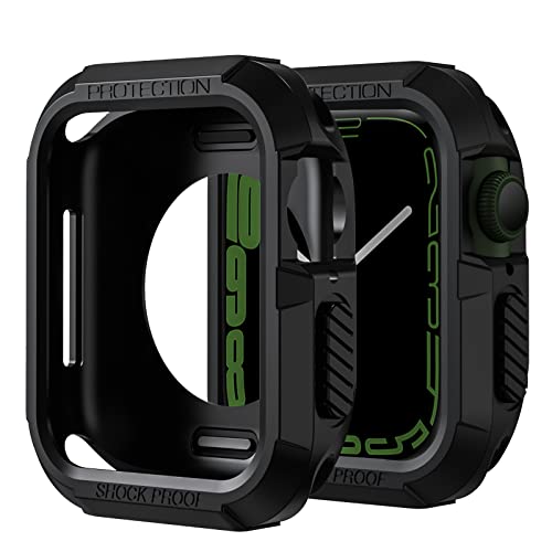 VEMIGON Rugged Armor Cover Case Compatible with Apple Watch Series 9, 8 and 7 41mm, Series 6 5 4 SE SE2 40mm with Full Protection Military Grade, Flexible Shockproof Resist Bumper – (41/40mm Black)