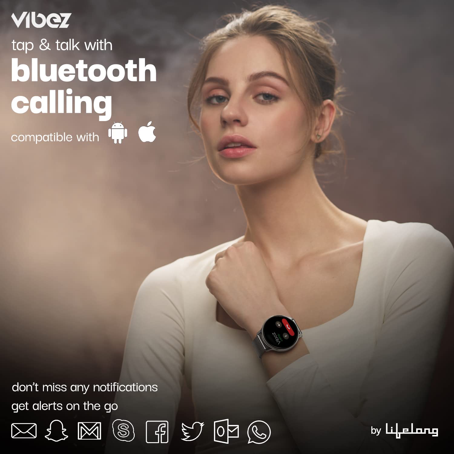 Bluetooth Call Notifications: With just a tap of a button, you can synchronize your mobile phone via Bluetooth to receive call notifications, even when you are on the go. This feature makes communication more efficient and helps you stay connected to your phone even when you re away from it. Vibez smartwatches are compatible with both Android and IOS devices.;One Watch. Two Straps: The Vibez Emerald smartwatch is a perfect choice for both men and women, as it offers a seamless switch from work to play with the change of a strap. Its skin-friendly silicone straps are not only comfortable but also fashionable, making it a versatile accessory for any outfit.