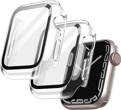 Xfilm 2 Pack Hard PC Case with Tempered Glass Screen Protector Compatible with Apple Watch Series 9 (2023) Series 8 Series 7 45mm, Ultra-Thin Scratch Resistant Cover for iWatch, Transperent