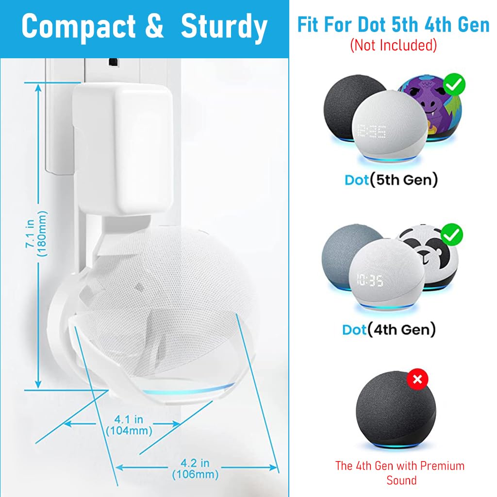PRECISION ENGINEERED FIT: Skillfully crafted to cradle your Alexa Echo Dot 4th/5th Gen, our alexa stand wall mount measures a compact 18cmX10.5cmX10.5cm. Experience a snug fit and peace of mind, knowing your device is securely anchored and always ready to respond to your voice commands.